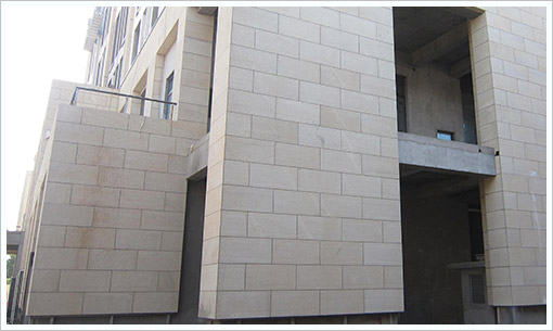 石材干挂法又名空挂法。是目前墙面装饰中一种新型的施工工艺。该方法以金属挂件将饰面石材直接吊挂于墙面或空挂于钢架之上,不需再灌浆粘贴。其原理是在主体结构上设主要受力点,通过金属挂件将石材固定在建筑物上,形成石材装饰幕墙。